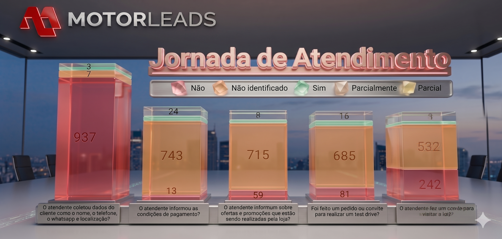 - O Gatilho de Ouro: A palavra "test-drive" foi falada durante a ligação? Se o vendedor não convidou o cliente para ir à loja, o sistema te avisa.