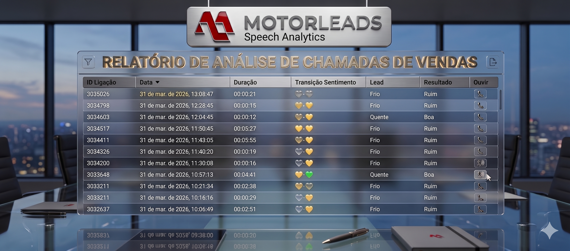 Traduzindo para o dia a dia da concessionária, o Speech Analytics é um sistema inteligente que escuta, transcreve (transforma em texto) e analisa 100% das ligações da sua loja, de forma totalmente automática.